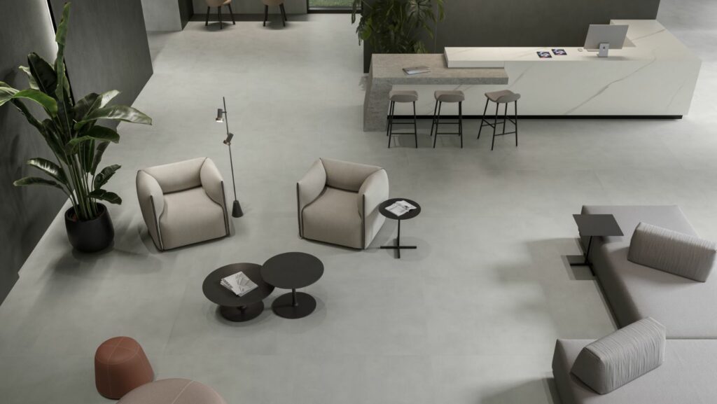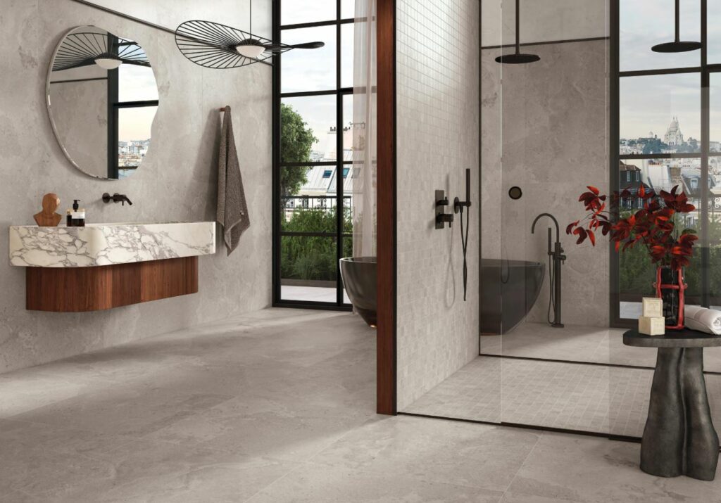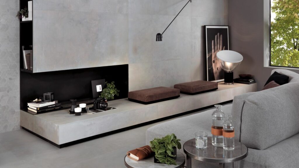 De uitstraling van betonlook tegels past helemaal binnen de actuele industriële woontrend. Hiermee creëer je in een handomdraai het gevoel van een stoere loft, een strakke badkamervloer met robuuste wanden of een tijdloze livingfloor.