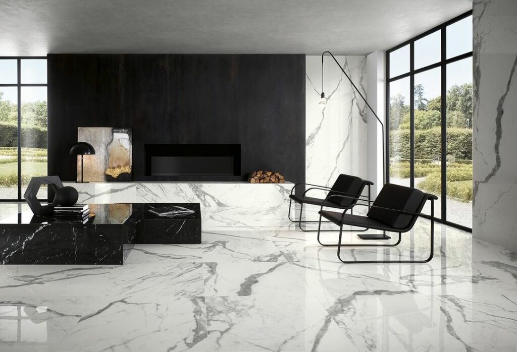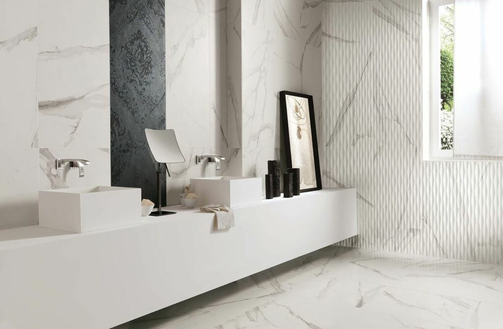 De schoonheid van marmer in een keramische uitvoering! En net zoals natuursteen in verschillende prints en kleuren te verkrijgen, in een matte of glanzende uitvoering. Een marmerlook tegel is tijdloos, en geeft een luxe design uitstraling. Het karakter van marmer past zowel in een klassiek interieur als in een moderne omgeving. Bianco Carrara is hier een voorbeeld van: gekenmerkt door de witte kleur met de grijze ader is dit materiaal in veel historische panden terug te vinden in de natuursteen variant, en in de huidige bouw heel vaak gebruikt in de keramische uitvoering. In grote formaten leverbaar, zelfs met doorlopende decors! Marmer looks blijven altijd mooi…