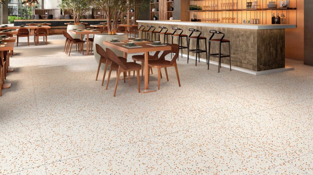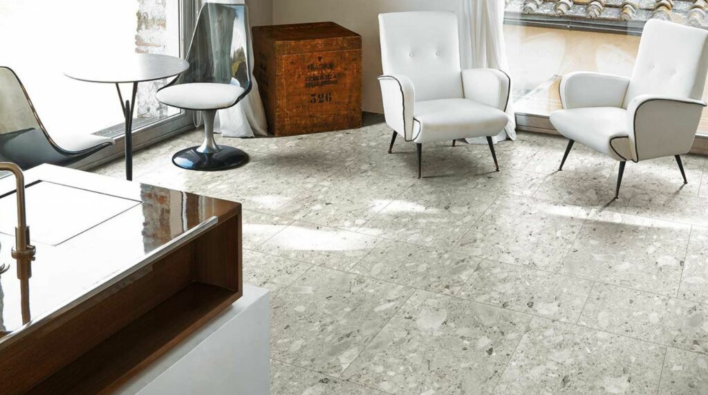 Terrazzo tegels hebben een authentieke uitstraling en passen goed bij een jaren 30 stijl. Maar ook in een moderne omgeving staan ze fantastisch. De keramische terrazzo look is sterk, tijdloos en onderhoudsvriendelijk. Verkrijgbaar in een grove of in een fijne kiezellook, in verschillende kleuren en kleurmixen, zoals licht grijs, donker grijs, wit, groen, antraciet, brique of een combinatie van kleuren. Kies jouw favoriet!